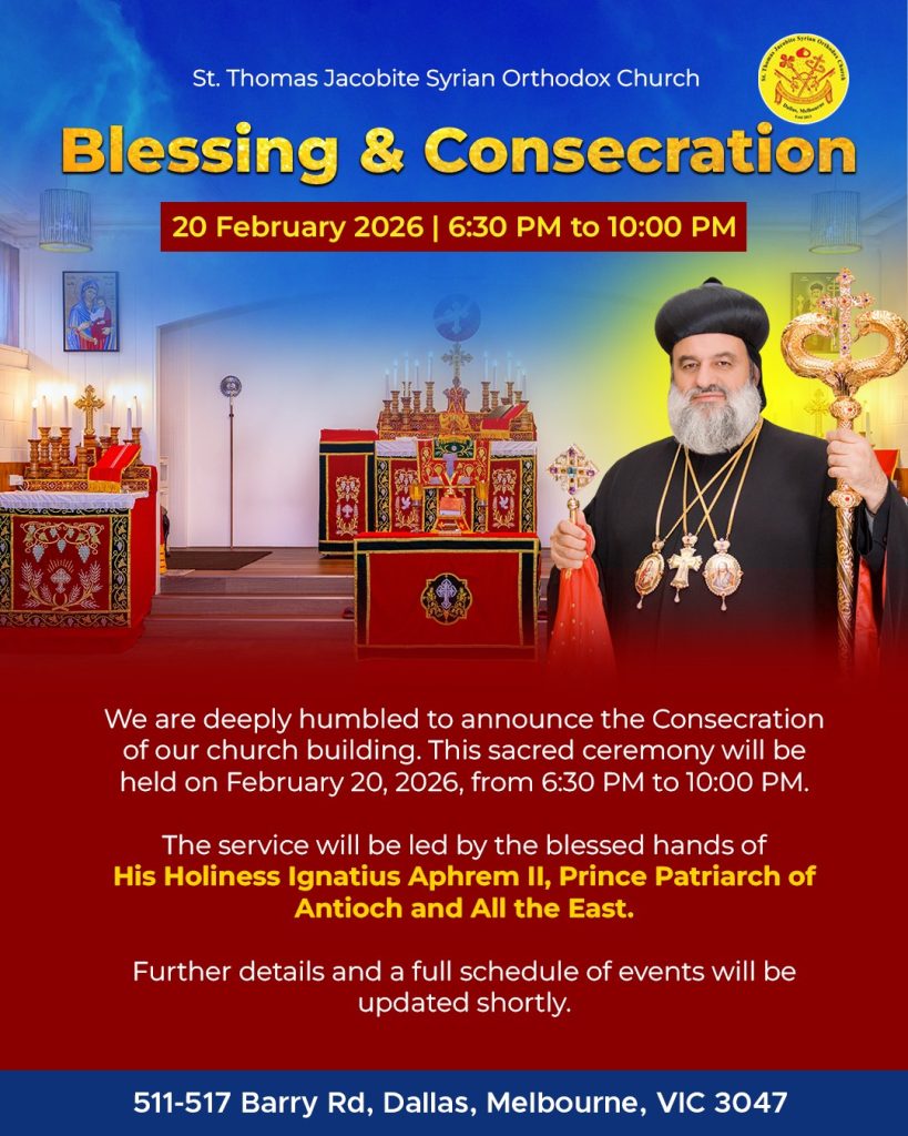 I pray that you are all keeping well in this beautiful city of Melbourne. If you are seeking Orthodox worship—especially in the Syrian Orthodox tradition—we warmly invite you to join us at 511–517 Barry Road, Dallas, 3047, for worship and community activities.